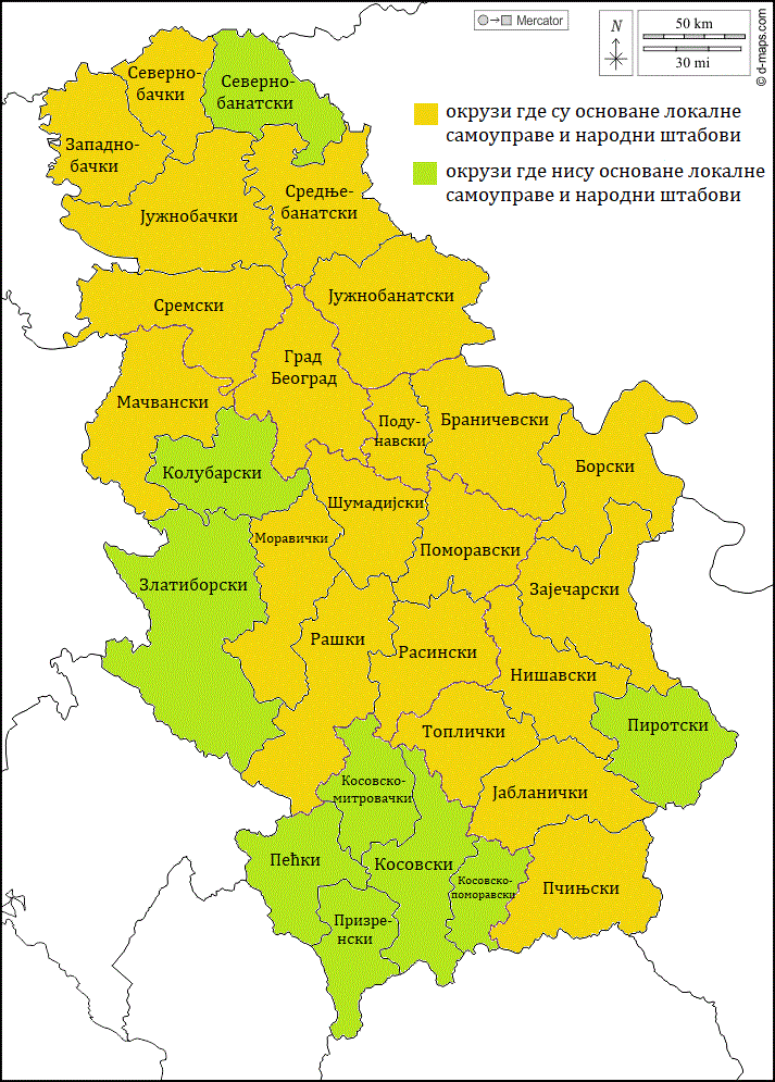 | Округ | Општина са основаном локалном самоуправом или народним штабом | контакт адреса (e-mail) |